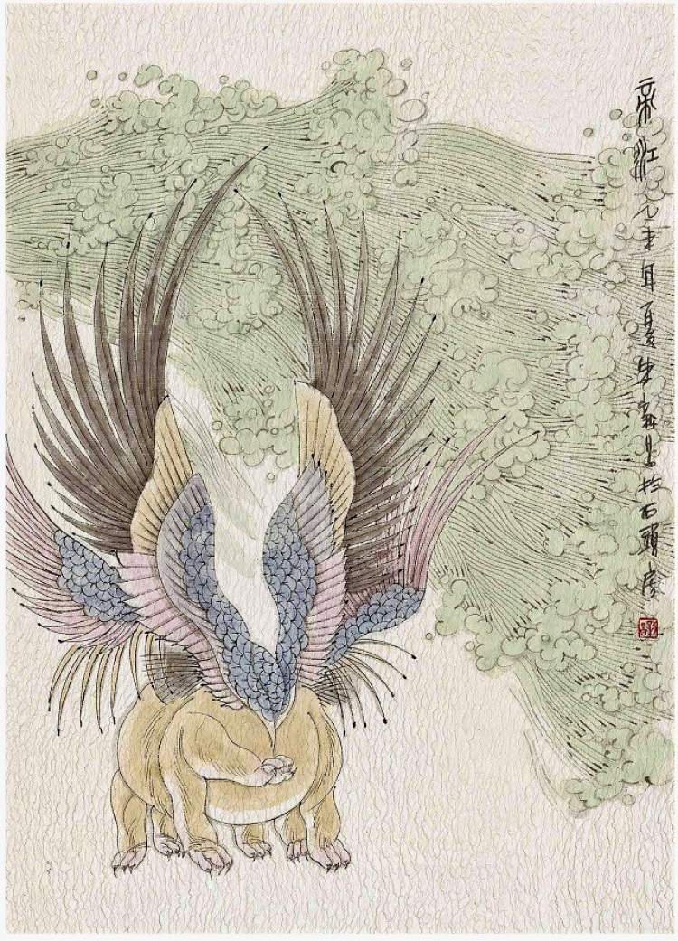 朱新昌先生以100幅如魔似幻的工笔画,赋予古老《山海经》以崭新的艺术生命力,对《山海经》中形形色色、奇幻别样的山川方国、人物鸟兽、神话传说、寓言故事做了别开生面的视觉呈现和读解,取得了与明清以来各类《山海经》画像截然不同的审美效果。