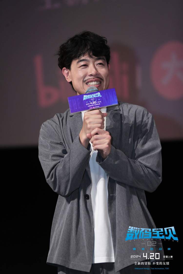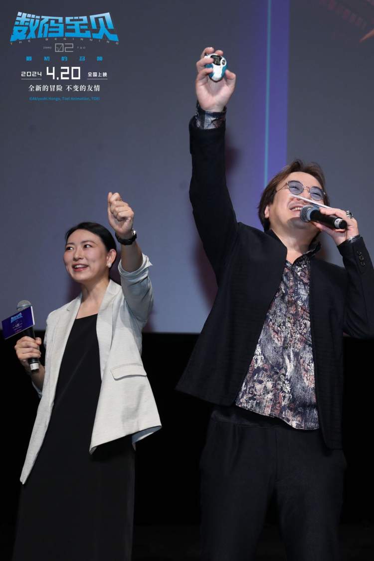 电影导演田口智久,制片人下村英里,插曲演唱者、唱作歌手宫崎步出席了上海场首映礼,与一千名现场粉丝热情互动,一同为《数码宝贝》25周年“生日”庆生。