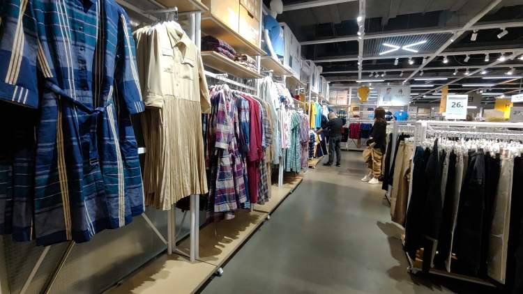 这种仓储型折扣店在沪上并非新鲜事,记者所到的折扣店位于青浦区一3层商业广场内,折扣店占据了2层,从上海市中心驾车前往需1小时左右,记者看到,不断有市民驱车前来,一对老夫妻告诉记者,他们从闵行区开车40分钟前来,专门来买衣服。