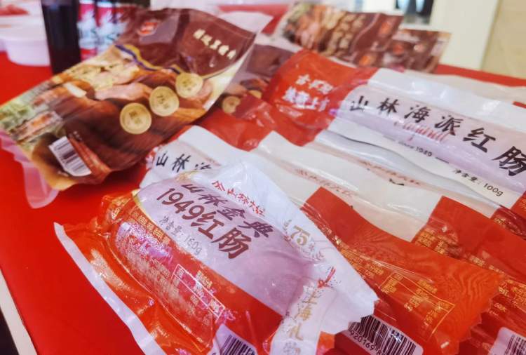 另一方面,红肠本身也在“进化”,从单一品种、单一渠道,变成各种成分、口感、包装、线上线下都能方便购买。“喜欢糯一点口味的就买传统款,色泽比较粉一点;喜欢口感韧一点更有嚼劲的,就买新款!”红肠节会场,工作人员介绍这大大小小不同品种的红肠,有的像小臂一样粗,有的比巴掌还小巧,各种口味、规格、款式,满足现代消费者多种多样的的需求。