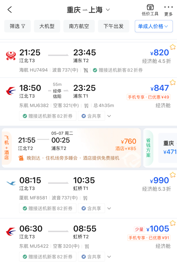 五一假期余额即将告急,返程高峰到来,有人已经堵在路上了,有人甚至还在候补车票。相比于出游的快乐,返程的劳顿着实费心。这个五一从上海去重庆的吴小姐就遭遇了返程机票刺客。