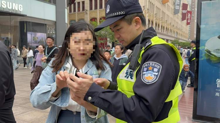 五一小长假期间,正在南京路步行街安保执勤的民警,发现一名游客长时间站在路边,时而打电话,时而翻看手机,显得十分焦急和犹豫,于是主动上前询问是否需要帮助,而经过一番沟通,民警发现这位游客竟然正在遭遇一场电信网络诈骗。