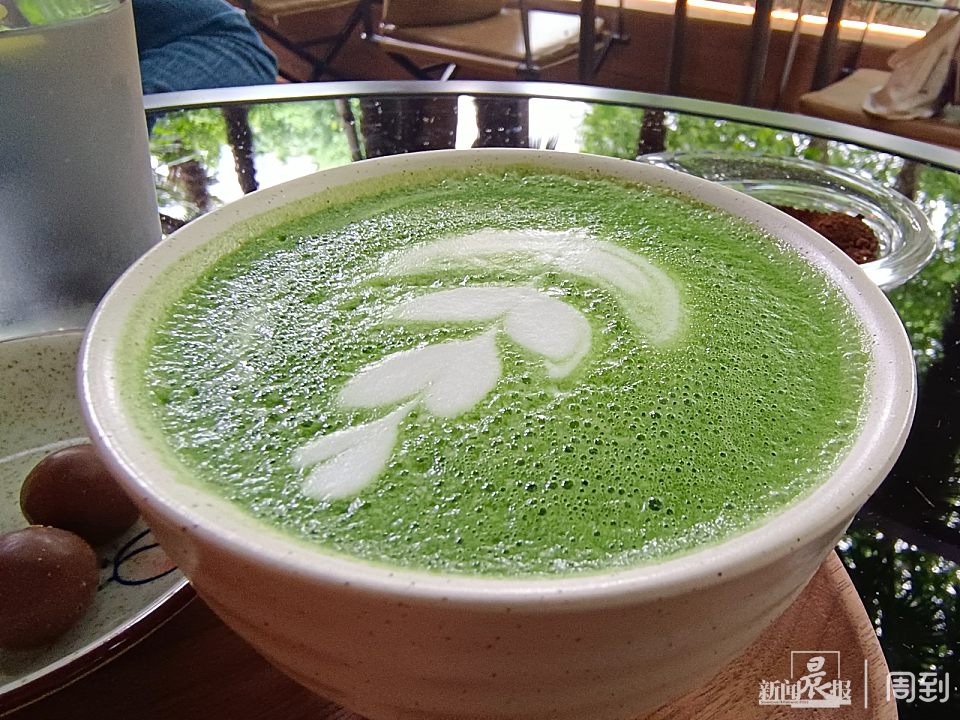 老店因为店面的局限性,只有一面是环窗的,平面图有点异形,然后我们就设计了两扇窗,让人可以看到窗外的风景。我们运用了最先进的的3D裸眼,是一个立体的效果,让人感觉“鸟会飞进来,叶子会飘进来”。我们对外摆区也进行了设计,结合周边环境营造了这样一个在阳光下喝咖啡、喝茶的一个概念,让顾客有坐在花园中享受生活的感觉。