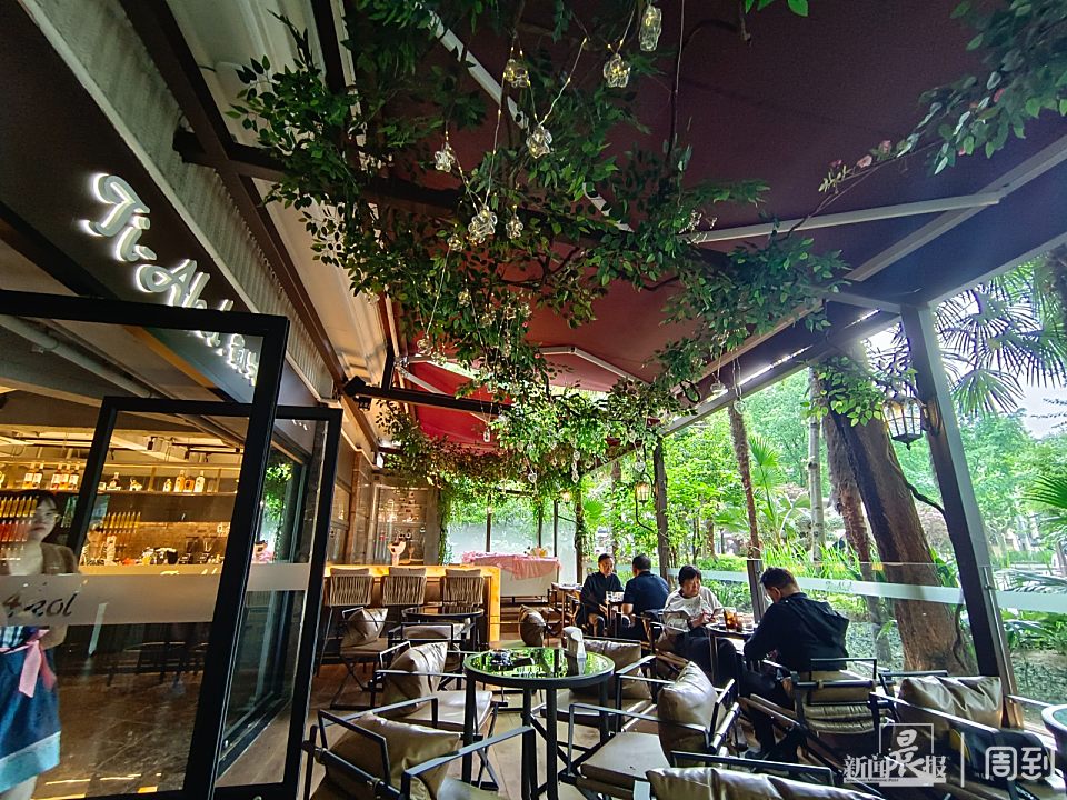 新店的外摆区结合了周边的绿化环境