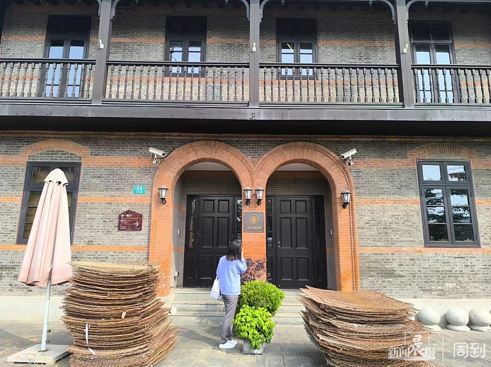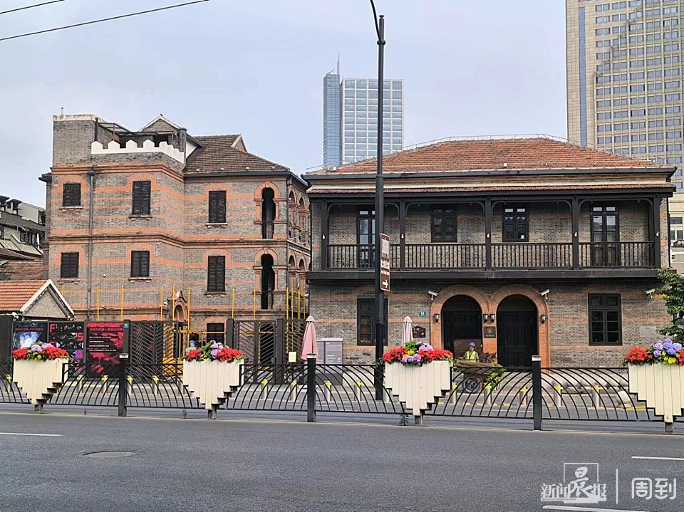 6日下午,记者看到,有市民特地来到长阳路上,对着这栋青砖墙面、红砖斜尖顶的三层外廊式建筑拍照留念。