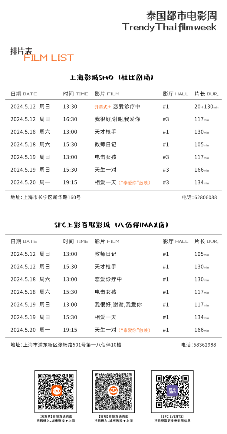 此外,本次展映影片还有备受追捧的《天才枪手》和《教师日记》,5月20日独家放映的浪漫爱情电影《相爱一天》与《天生一对》,则为情侣约会提供了好去处。