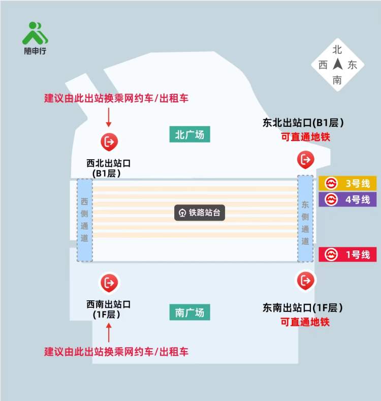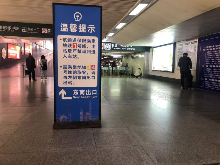 上海站东南出口,可以免二次安检乘坐地铁一号线