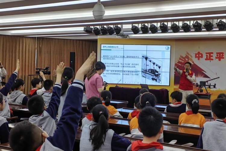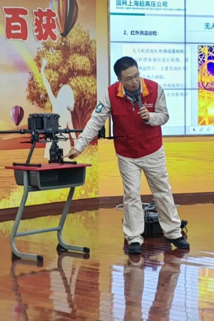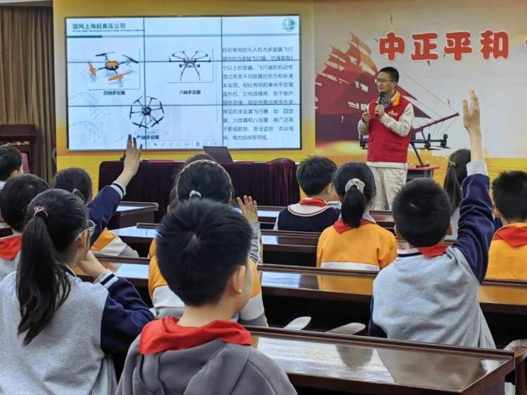 现场,何冰为学生们来一场精彩的以“知识、创新、分享”为主题的无人机讲座,激励学生们要脚踏实地,勇于创新,为国家的科技进步贡献力量。在活动的互动环节,学生们就感兴趣的“无人机巡线、清障、除冰”等电力检修问题踊跃提问,何冰的亲身经历和智慧经验让学生们深受启发,国网电力的工作人员还给学生们带来了《春游记电力安全小贴士》,让学生们进一步对电力工作者有了深刻的了解和发自内心的崇拜与尊重。