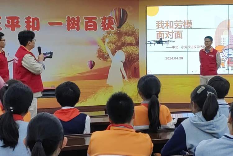 为弘扬劳模精神,激发学生们奋斗创新的热情,石泉路街道新时代文明实践分中心联合国网上海市电力公司超高压分公司、中山北路第一小学共同举办了“致敬劳动模范 传递榜样力量”劳模进校园活动。本次活动邀请了国网电力的“上海市劳模”、“全国五一劳动奖章获得者”何冰同志走进校园,与学生面对面交流,分享他的奋斗历程和成功经验。