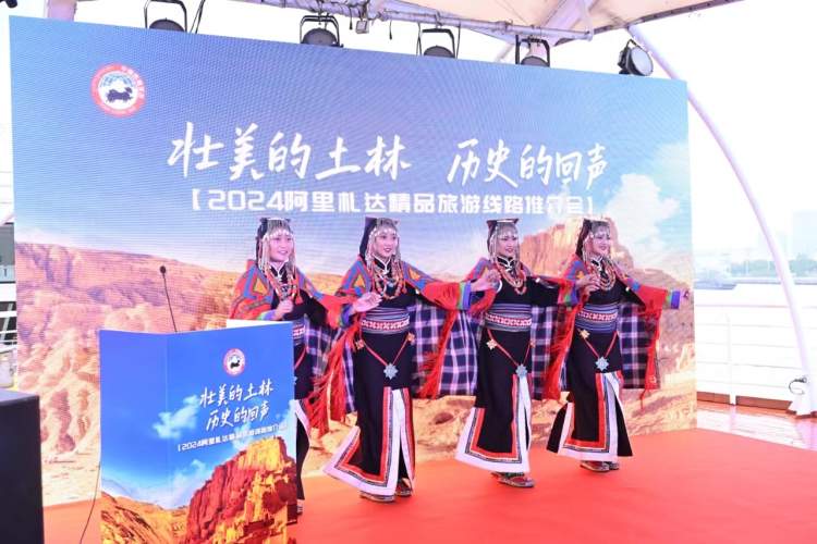 神秘莫测的玛旁雍措圣湖、雄伟的冈仁波齐神山,以及札达县那充满奇幻色彩的土林地貌,推介会现场不仅播放的宣传片引来了诸多关注,更有札达县艺术团的藏族传统舞蹈和歌曲表演,表演者们身着色彩斑斓的藏族服饰,通过充满仪式感的舞蹈和歌声,展示了藏族文化的丰富多彩和高原的深情,让在场嘉宾深刻感受到了阿里地区文化的魅力。