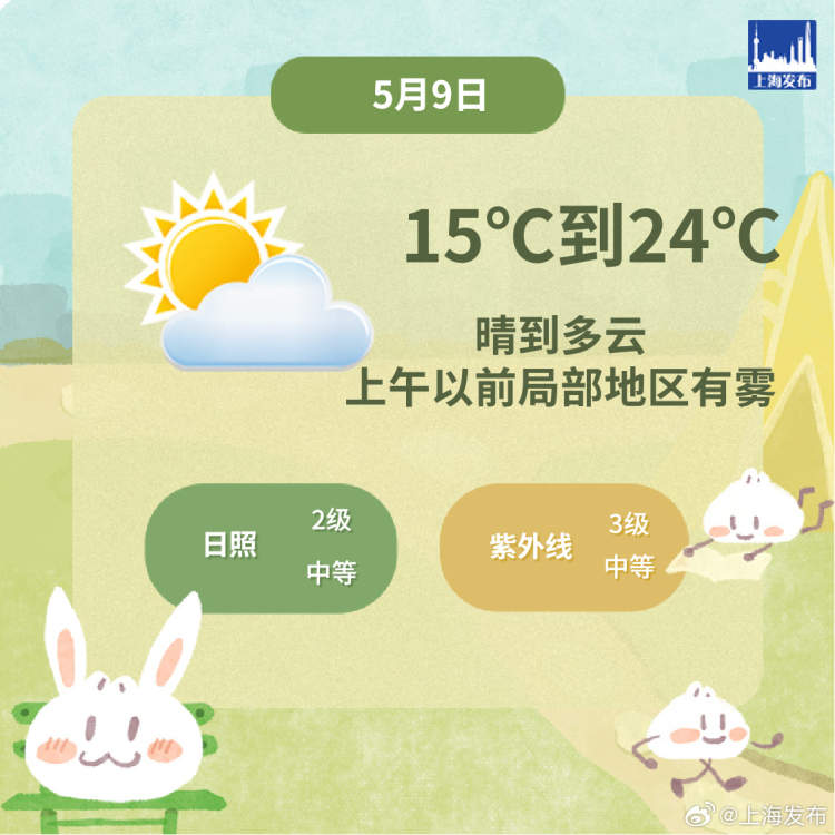 申城天气:今天阳光明媚,最高气温24℃,好天气将营业至周六 周到君 2024-5-09 来源:周到上海 今天上海晴到多云,上午以前局部地区有雾。今天吹的是3-4级东南风,夜里转4-5级,全天气温15-24℃,昼夜温差近10℃。 这一波好天气将持续到周六,周六雨水归来,转为阴有时有阵雨的天气,周日雨水减弱,气温起伏不大,最高气温维持在24-25℃。 (内容综合自上海发布、上海市天气) 来源:周到上海 作者:周到君 赞一个 (0)