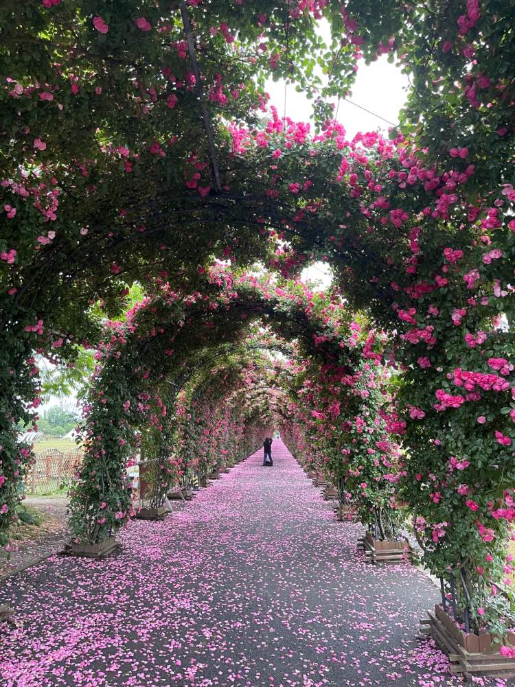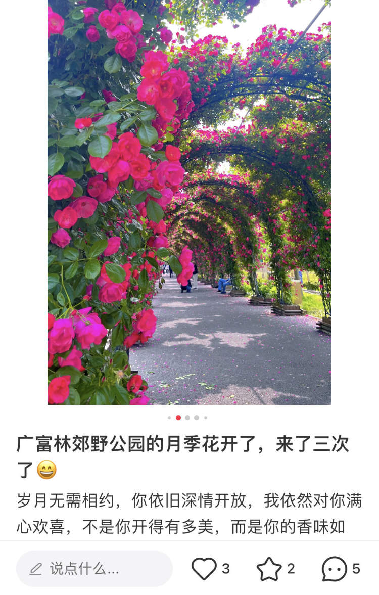 即便住在市区的市民游客,也愿意“远赴”松江打卡这份美丽。有网友还表示,最近已经去打卡这个月季隧道3次了。