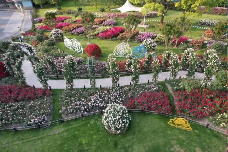 位于花木街道的花木月季园的月季品种有38种,数量达12000株左右,除了月季长廊外,还有各种造型的月季。