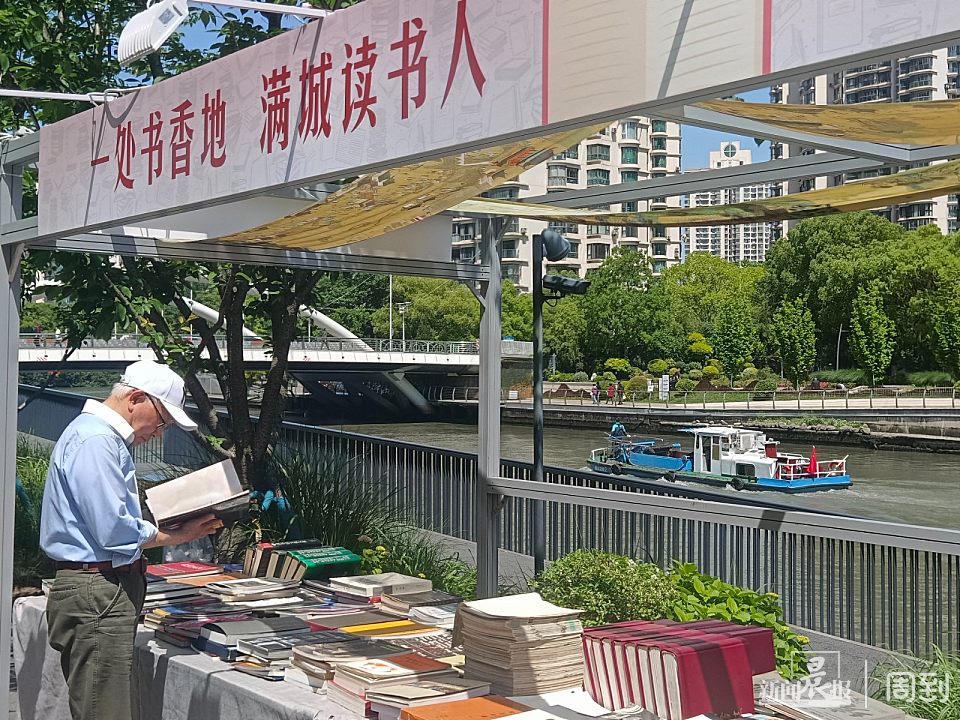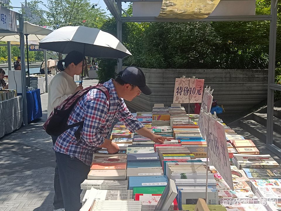 夏天在苏州河边上也能淘旧书了!5月14日至19日,“淘书乐”旧书市集在普陀地标性建筑天安千树的河滨步道举办,这也是旧书市集第一次走出黄浦并在夏季举办。5月14日是旧书市集夏季版的首日,我们就此前往旧书市集现场进行采访。