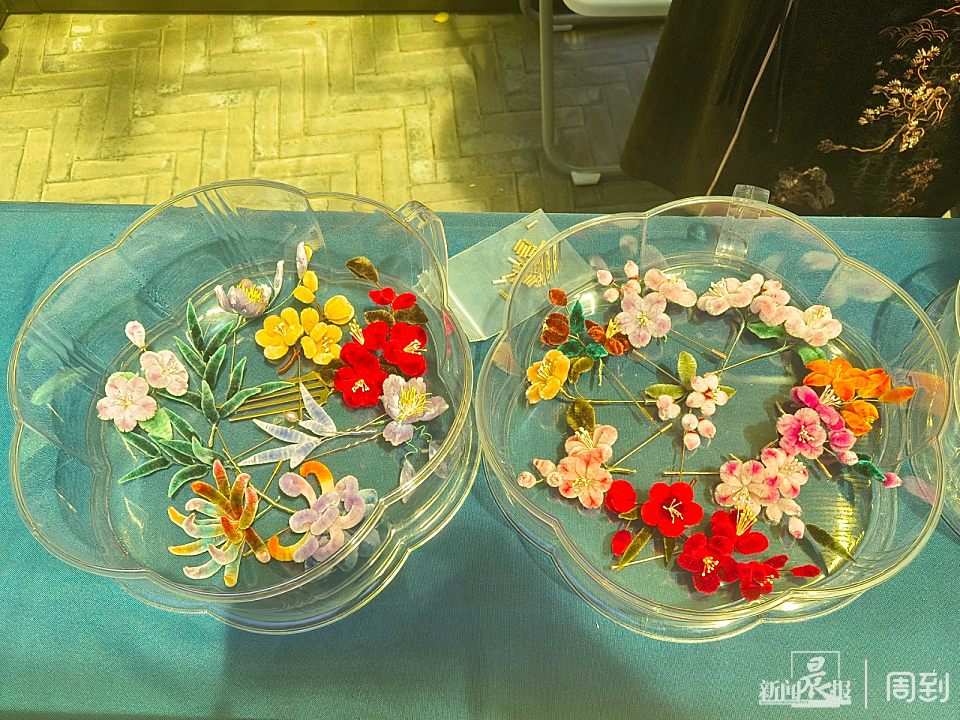 旧书区域我们有将近三万多个品种,特价书区域将近有六千个品种,这一次还特别增设了海派文化和传统文化两大板块,还引进了原版绘本,折扣都是很优惠的,从三折起。特设8个展柜,精选部分价值较高的古旧书陈列展出,包括清乾隆海录轩双色套印本《文选》、清刻本《康熙字典》、民国影印本《筠清馆法帖》等,可展可售这一次文创的体量也比上次翻倍,有近六百种文创产品,引进了非遗绒花、禅栖结艺等有中国元素的文创。