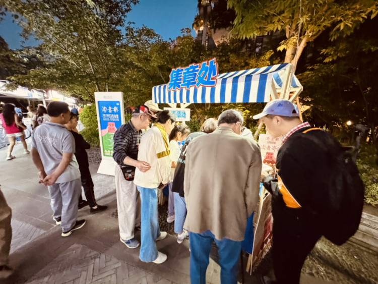 集章打卡是“淘书乐”旧书市集的特色。据悉,这次推出三款以天安千树、昌化路桥和“书香游轮”为原型的定制新章。一大早,就有不少集章爱好者赶来敲章。