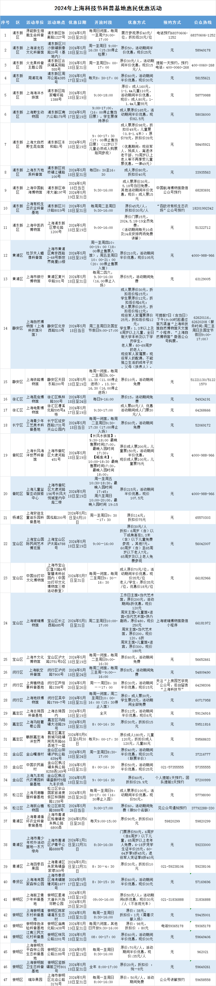 🔊 2024年上海科技节科普基地惠民优惠活动 >>>