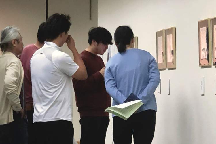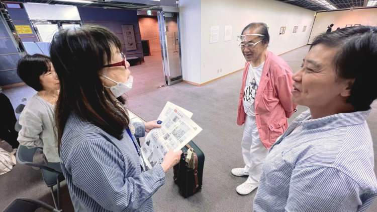日本滋贺县美术协会副理事长三原博先生(左一)在参观
