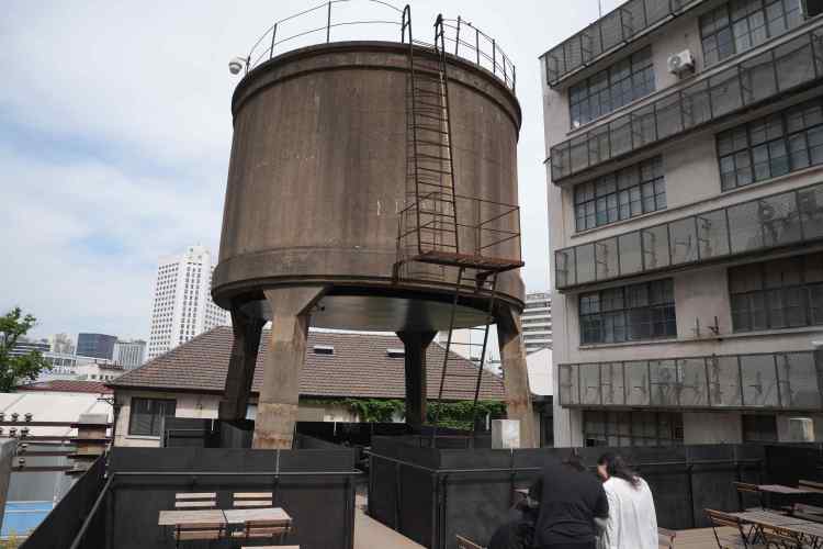 园区内有座水塔,是原上海春明粗纺厂于20世纪30年代建成,曾被用作整座纺织厂的蓄水储备和水泵运行稳定。2000年,纺织厂转型成创意园后,该水塔除了曾被用作办公仓储外并未对市民完全开放,2020年原工作室退场后更是封闭了近3年时间。