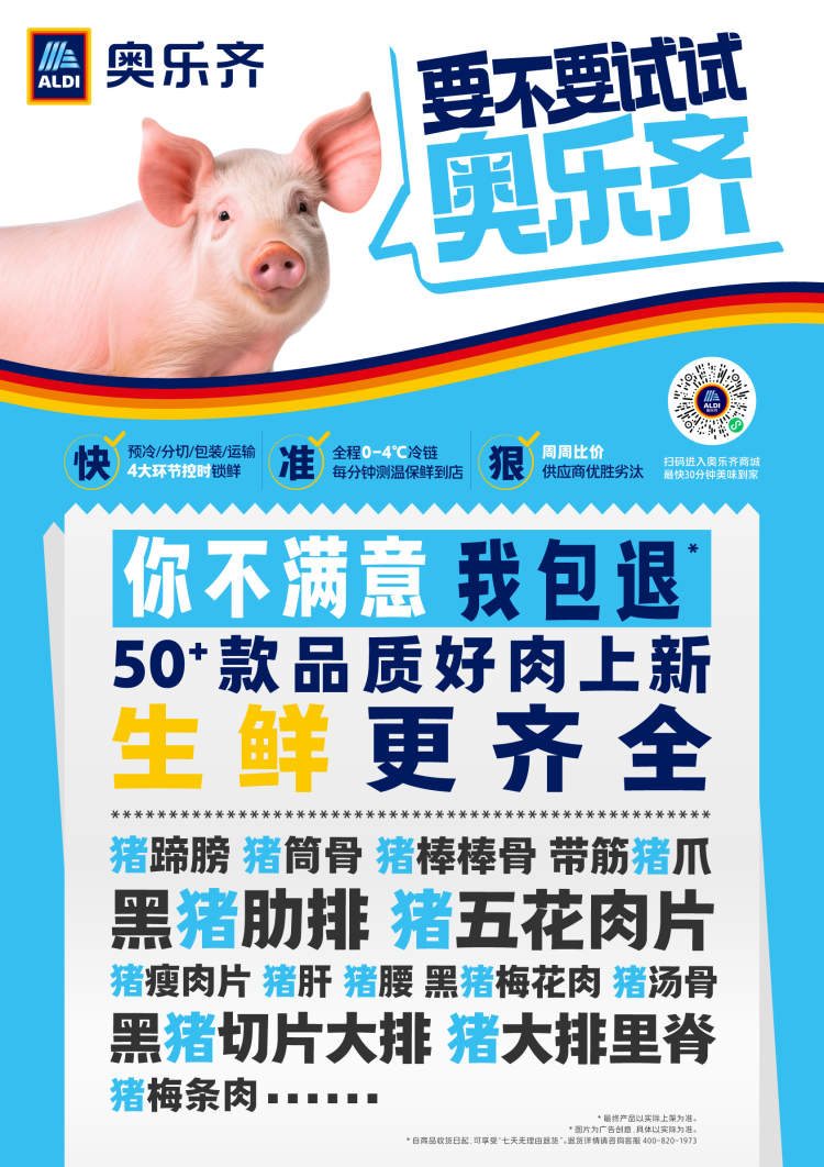 此次大规模上新生鲜肉类,ALDI奥乐齐秉承着为本地消费者服务的初心,紧密围绕上海市民的饮食文化、口味、烹饪习惯与场景等,对原有鲜肉产品线进行了更富有本地特色的扩充,并且承诺100%冷鲜肉,坚持不卖“冻化鲜的冷冻肉”。