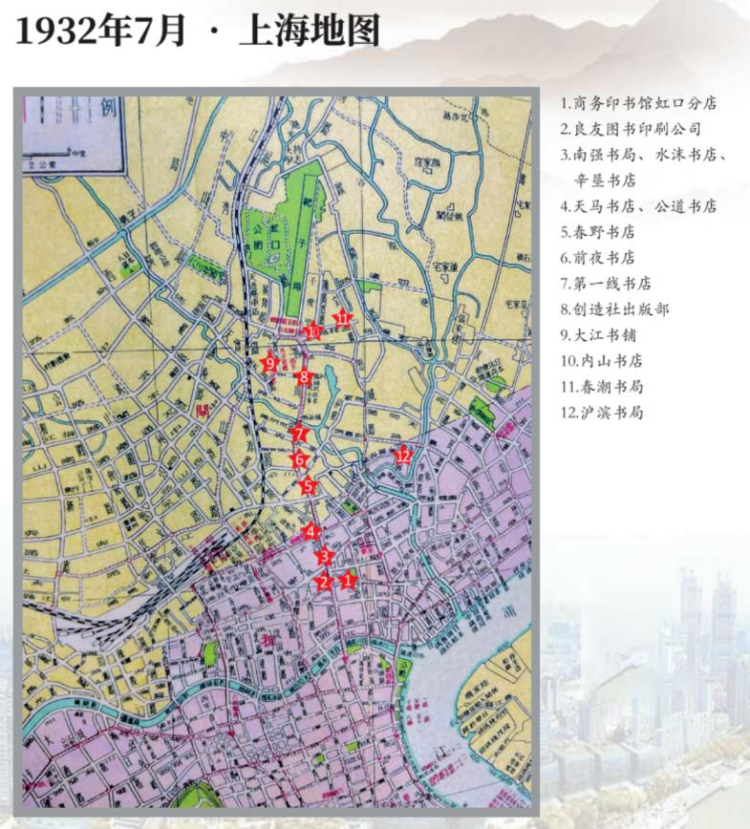 从十九世纪八十年代伊始,华商徐润便创办了同文书局(1881年),外国传教士创设了广学会(1887年),由此拉开了虹口出版事业发展的序幕,在上世纪三十年代到达顶峰,登记各类出版社、书店约87家,在四川北路-河南北路-海宁路涌现出如商务印书馆、水沫书店、辛垦书店、良友书店等进步文化集群,其中,设址弘安里的天马书店更是左联文艺活动的前沿阵地。