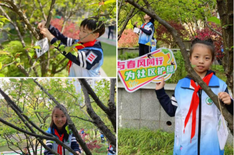 上个月,新普陀小学东校也认养了祥和公园里的35株美人梅。35位师生志愿者代表亲自为认养的美人梅挂牌,并在公园管理员的带教下展开劳动实践。他们用点滴行动爱护绿化、保护公园环境,播撒一份份护绿爱心。