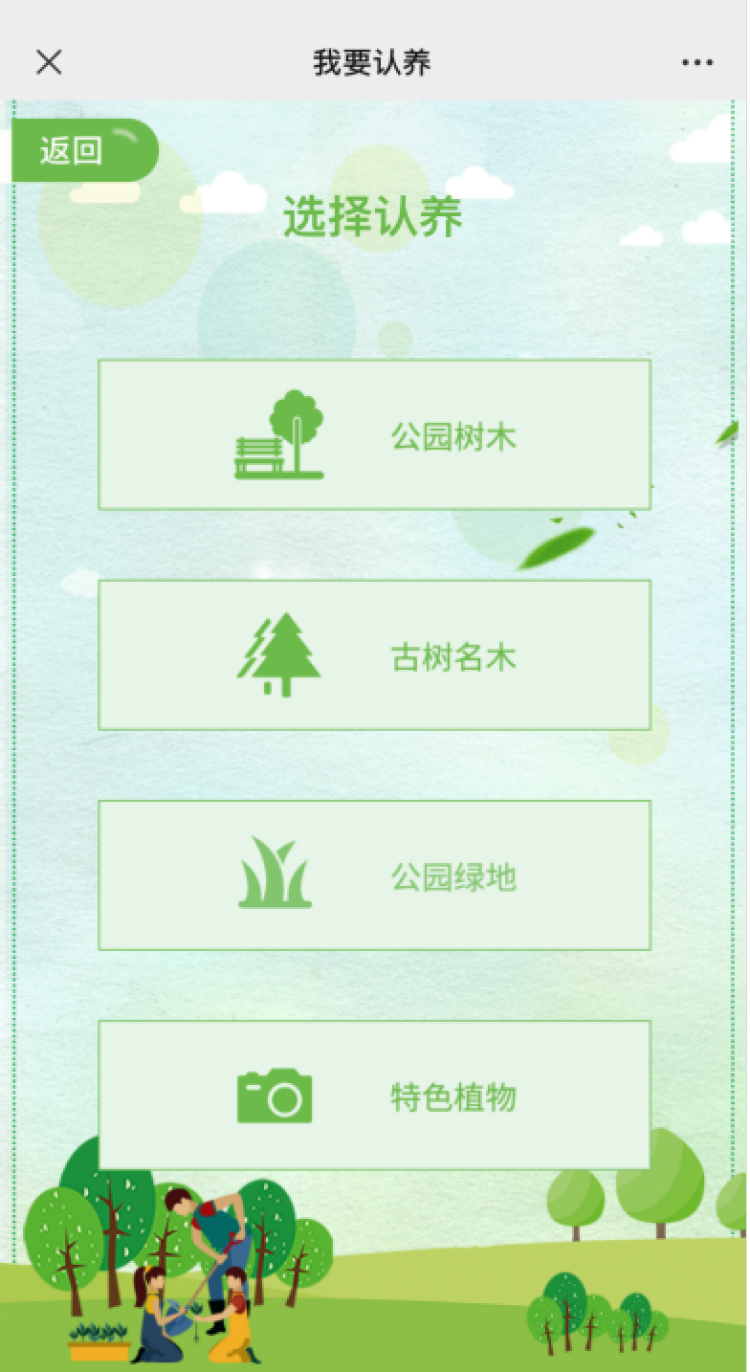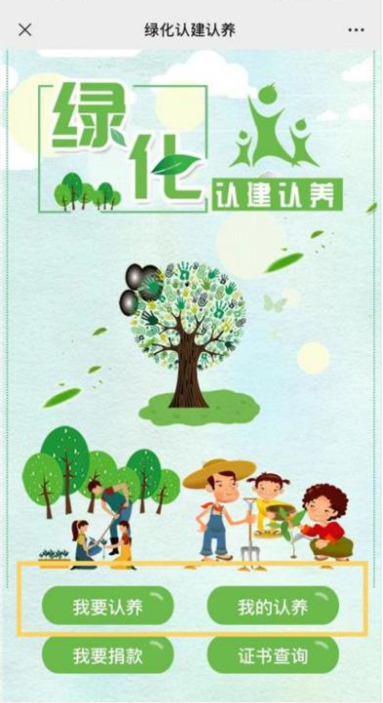 进入“绿化认建认养”页面·如想认养树木,可在“绿化认建认养”页面中,选择“我要认养”,筛选认养的树木种类和所在地区,选择心仪树木并完成付款,即可解锁一场护绿实践。
