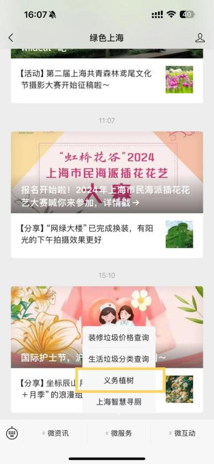 ·如从“绿色上海”微信公众号进入,需点击页面下方菜单栏“微服务”,找到“义务植树”栏目,点击即可登录认建认养平台。