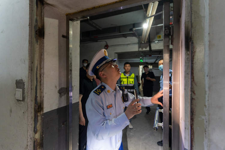 在普陀区,消防、公安、房管、市监等部门组成的联合检查组发现,多处住宅小区地下非机动车停车库存在常闭式防火门损坏或未保持常闭状态等隐患,立即督促物业单位维修或更换损坏的防火门。