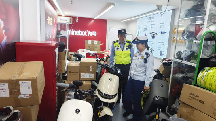 ▲静安区检查组深入电动自行车销售网点开展检查