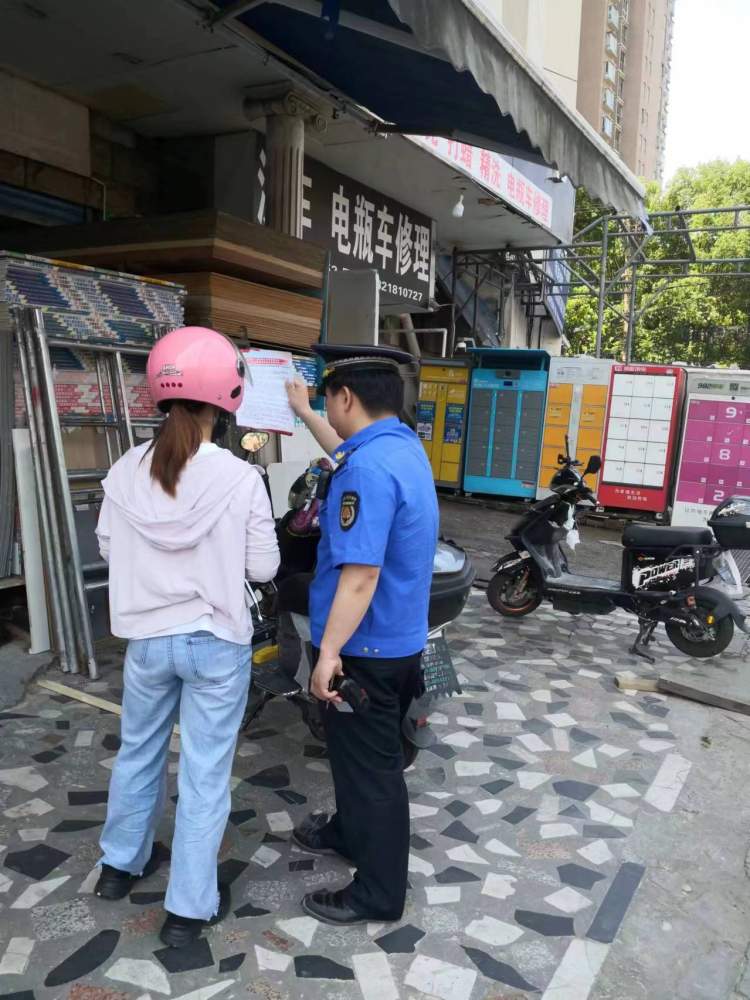 执法队社区组队员依托城管社区工作室,加强居民小区内的日常巡查,及时发现并整治电动自行车违规停放、违规充电的行为;巡查组队员在开展日常街面巡查时,重点关注农贸市场、房屋中介、快递外卖站点等点位,及时排查电动自行车各类安全隐患。
