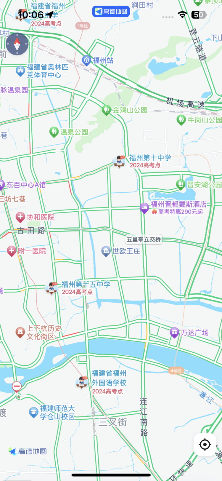 今年高考,高德地图就将与交通安全管理部门合作,解决这一问题。目前,北京、辽宁、天津、江苏、福建、广东、湖北等10多个省区、100多个城市,预计于高考前夕上线2024高考考点地图。