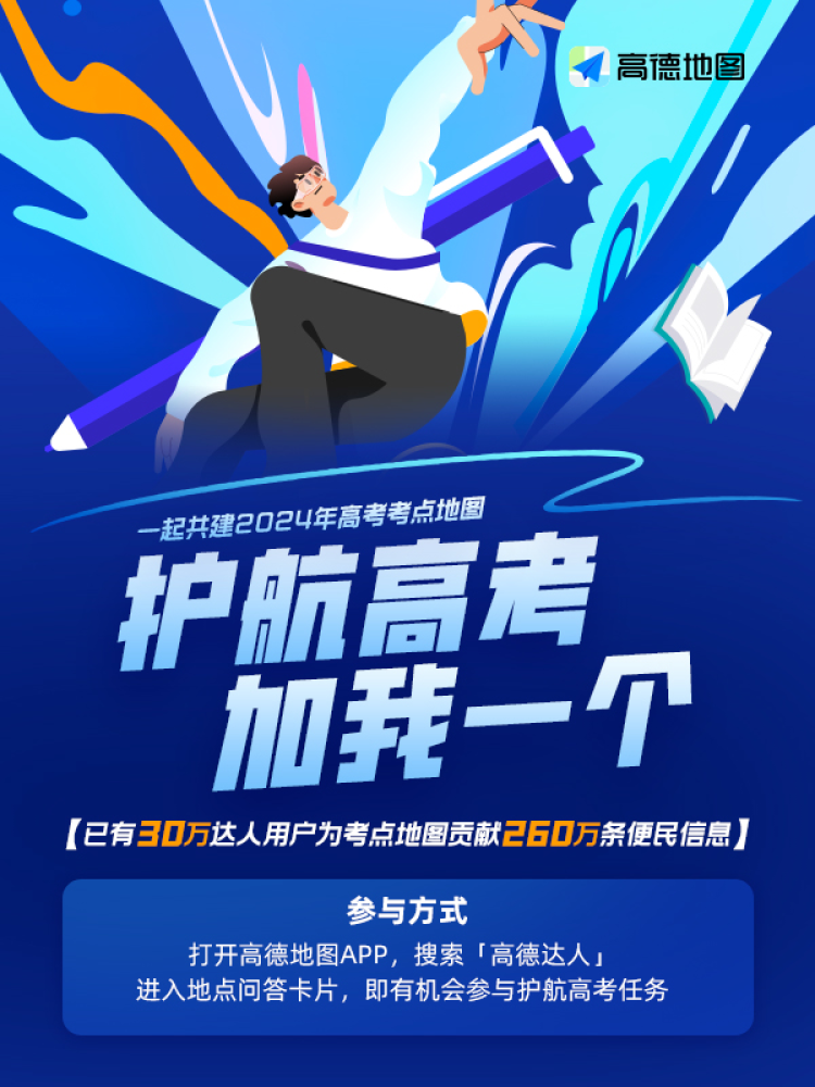 在2024高考考点地图建设中,高德地图还联动达人用户,共同丰富和完善考点周边信息。高德地图已经面向达人用户发布“护航高考”任务,用户可以搜索“高德达人”,在页面的地点问答卡片中,上报、新增便民信息,或验证便民信息是否准确,共同参与考点地图建设。