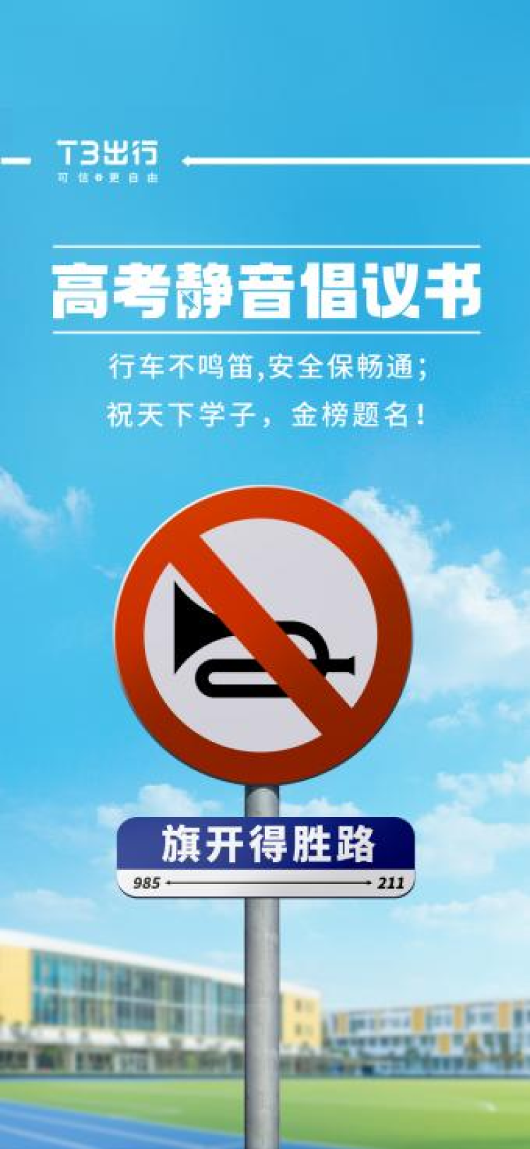 高考期间,T3出行还要求司机全面做好静音、安全出行,为考生、市民带来更好的出行环境。