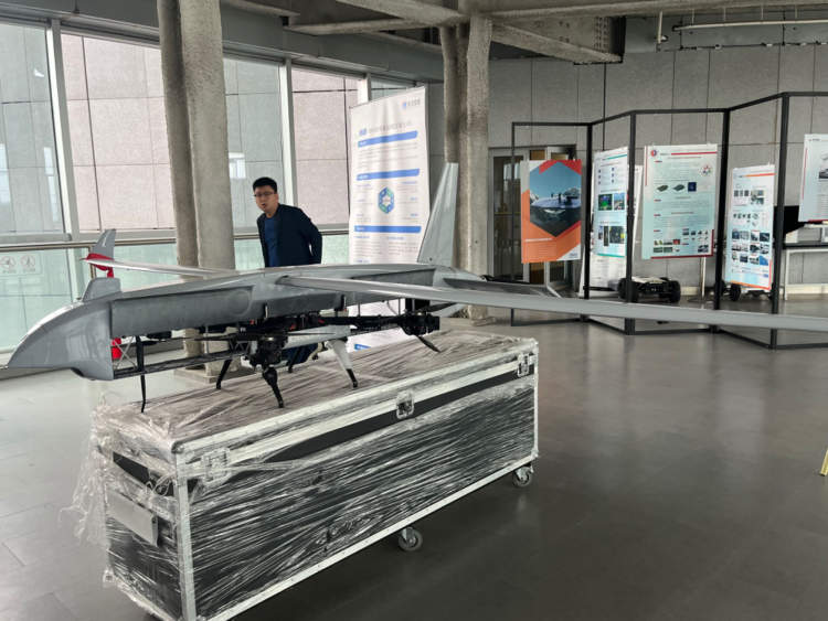 在东古智能展厅内,一架长达2.2米,最大荷载能力为5KG,最大飞行速度为每小时145公里的油电混动垂直起降固定翼无人机正展翅待飞。这是今年其将在上交会展示的重点产品——“鸿观”,这也是国内首款续航超过1000km的中小型民用无人机,在无人机领域拥有一系列核心专利,独创的可收放旋翼电动垂直起降固定翼无人机性能卓越,目前已广泛应用于公共安全、国土资源、应急消防、基础设施检测等领域。