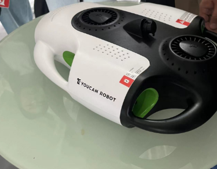 同时,何政道现场给大家演示了“海洋之眼”轻工级水下机器人,可用于港口防蛙人、水库管线和光缆巡检、船底缉私、江河和近海搜救和考古等。曾获2023年德国红点设计大奖,拥有比较高的性价比,价格是一般商用水下机器人价格的1/3。何政道希望,该产品能和无人机一样成为名片产品。