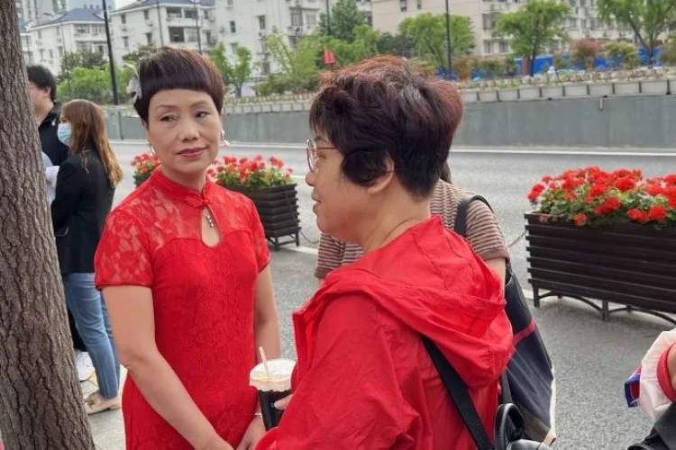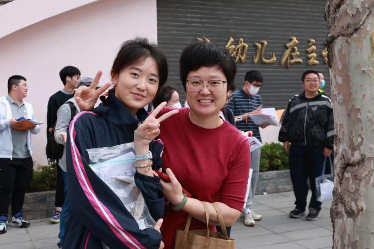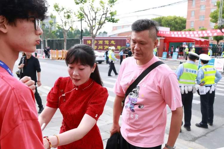 不少送考家长身着红色T恤、红色旗袍,寓意“旗开得胜”,大家聚在一起为考生们加油鼓劲。“特意买的,孩子也希望我穿得有仪式感,为他打气。”一位妈妈表示。
