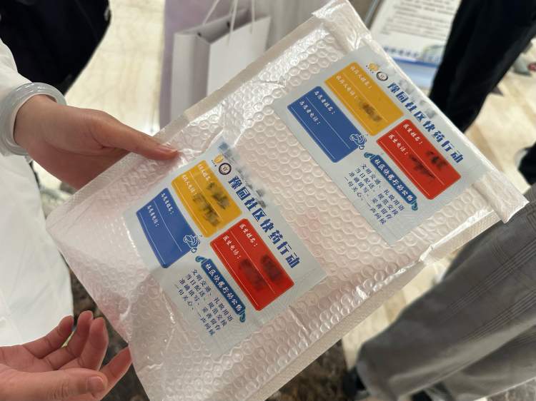 值得注意的是,在“社区快药”的药品包装上,都贴有两张醒目的配送单,这是为了通过不同色块来明确家庭医生、收药人和志愿者的基本信息。