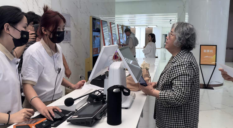 其中,几位银发族影迷引起了记者的注意,他们有人默默地排着队,有人则拿着手机在工作台前询问工作人员,他们是否清楚线上线下售票规则,又买到心仪的电影票了吗?记者上前和这几位老影迷聊了聊。