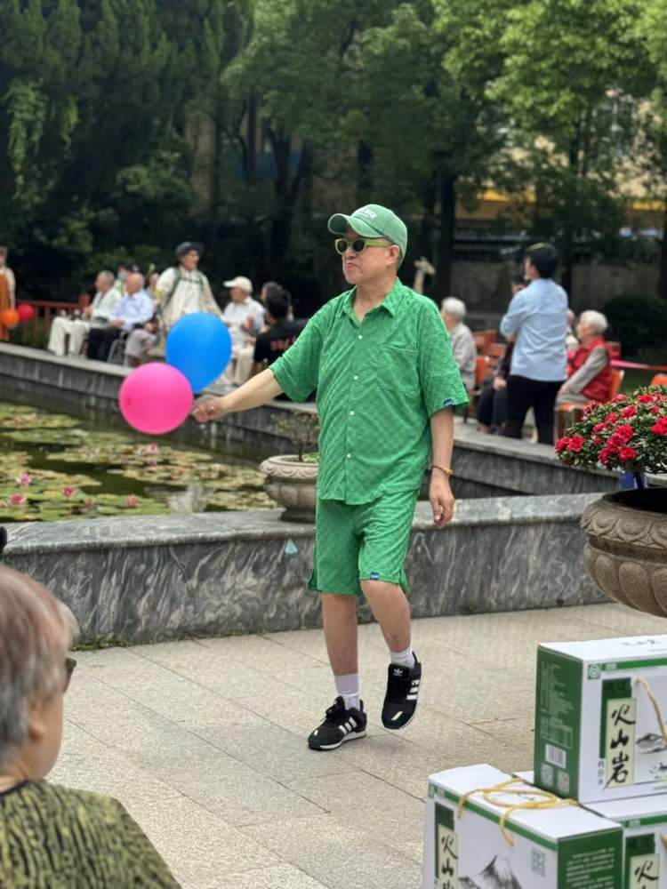福利院的老人们身着各式时尚服饰,光彩照人。他们有的穿着运动感十足的篮球装,仿佛重返青春球场;有的则选择了西皮风格的服饰,独特的剪裁和精致的细节让人眼前一亮;还有的身着专业登山套装,展现出坚韧不拔的精神风貌。最引人注目的是,有位老人穿着全绿色的套装,宛如森林中的精灵,老人们称这种服装为“绿意盎然”装,充满了生机与活力。