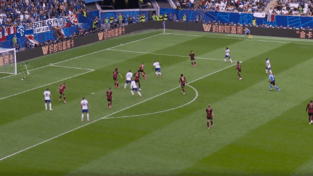 比利时依靠多库的个人能力在前场创造了一定的机会,而法国则是通过整体配合威胁比利时的球门。创造了更多机会的法国队最终得到了幸运女神的眷顾,第85分钟,替补登场的穆阿尼在禁区内强行大门,维尔通亨伸脚一挡,皮球折射飞入自家球门。维尔通亨也成为了本届欧洲杯上第9个打进乌龙球的倒霉蛋。