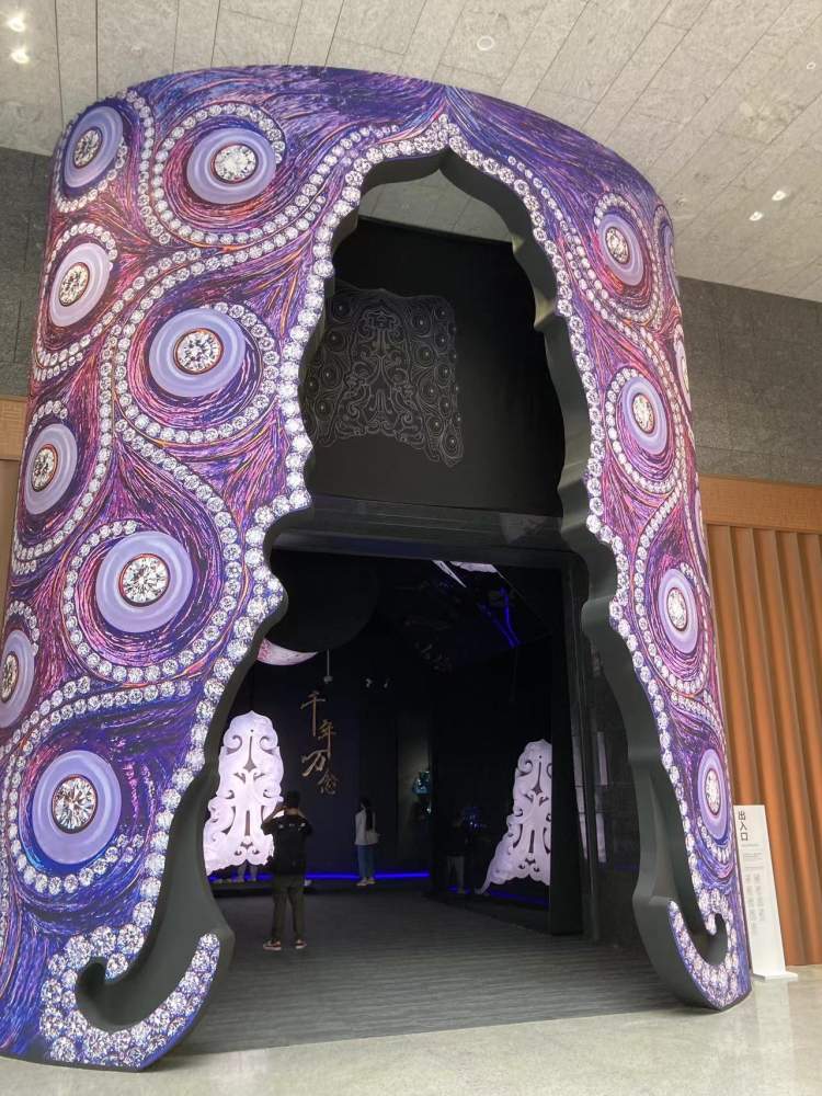 展陈空间运用不同的色彩和雕塑艺术为过渡手法,以展厅的暗空间为主,结合蓝、红、紫三种不同的色彩语言,诠释出“雕刻与载体”“混沌与魔法”“智慧与力量”三个主题展区的情感引导和展品背后的雕刻艺术,并营造出宁静和舒适的观赏体验,让人们得到珠宝雕刻艺术和当代艺术带来的双重愉悦,相信每一位观众都会有目迷五色、颜值拉满的参观体会。
