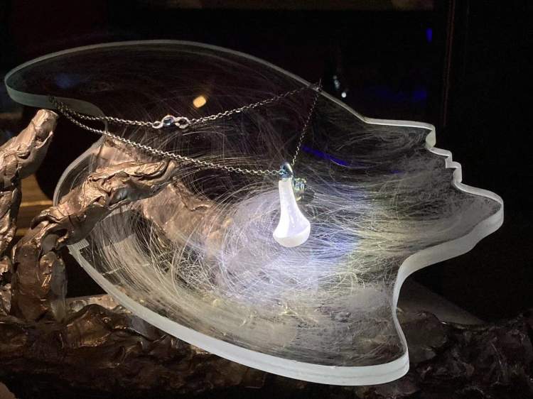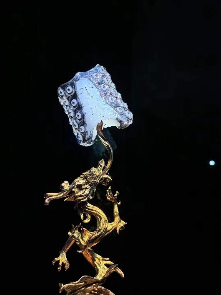 展品《王者归来》已入藏上海博物馆,它以羊脂白玉、钻石、钛金属为主材,结合了西方现代绘画的繁星点点和中国战国时期的玉雕工艺。作品古今兼容,中西并蓄,传神而传奇。