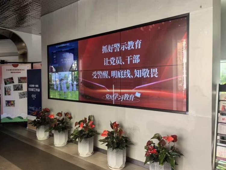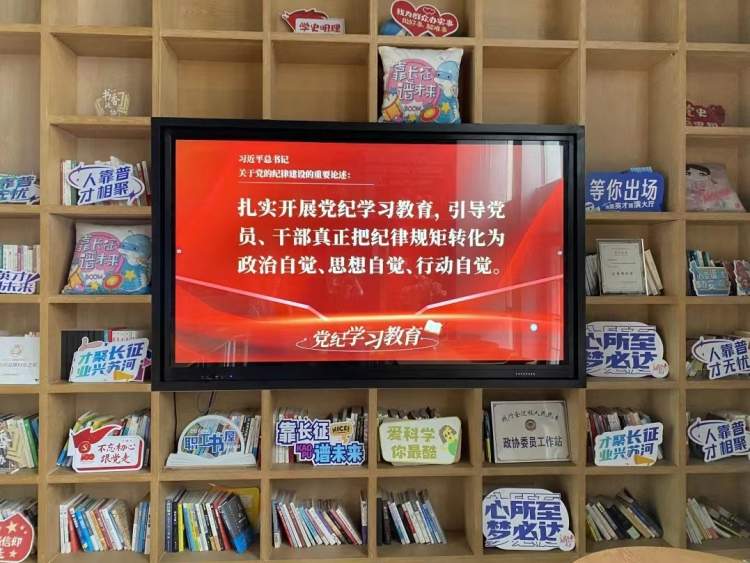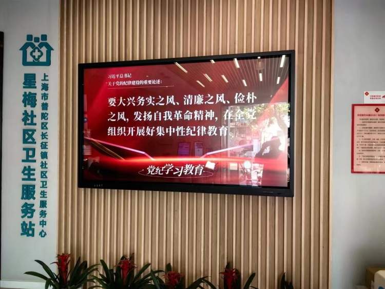 镇党群服务中心不断加大党纪学习教育宣传力度,丰富宣传载体,延伸宣传触角。各街镇级党群阵地、楼宇(园区)和居民区党群阵地纷纷通过电子屏方式滚动播放宣传海报,营造了浓厚学习氛围。
