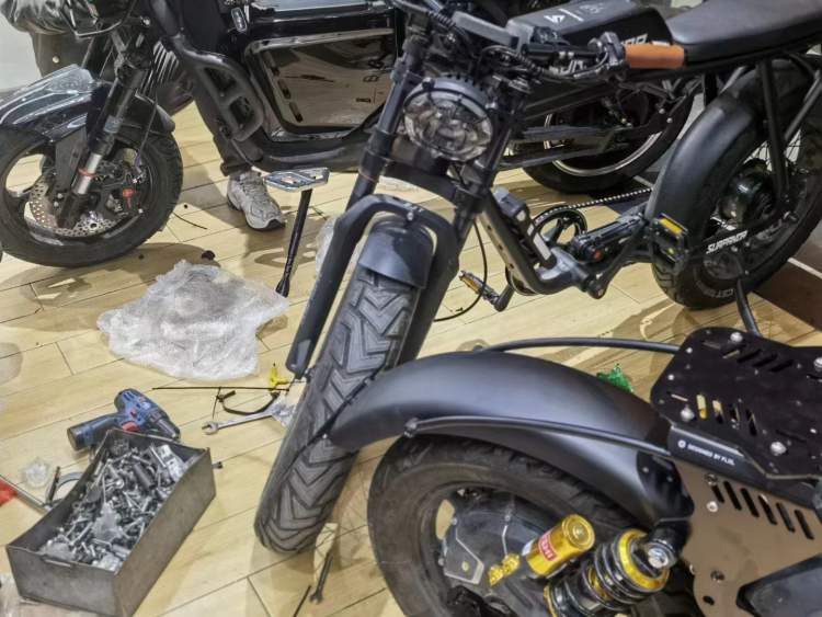 市场监管部门联合公安对排摸的情况进行了梳理和进一步挖掘,发现当事人与普陀区某小牛电动自行车专卖店有较为长期、频繁、大额的资金往来。陆续发现当事人与杨浦、黄浦、普陀的多家经营户存在类似、多次的业务往来。执法部门快速锁定4个改装点,联合收网。在现场共查获经过定制化拼加改装,但尚未发货的电动自行车6辆。