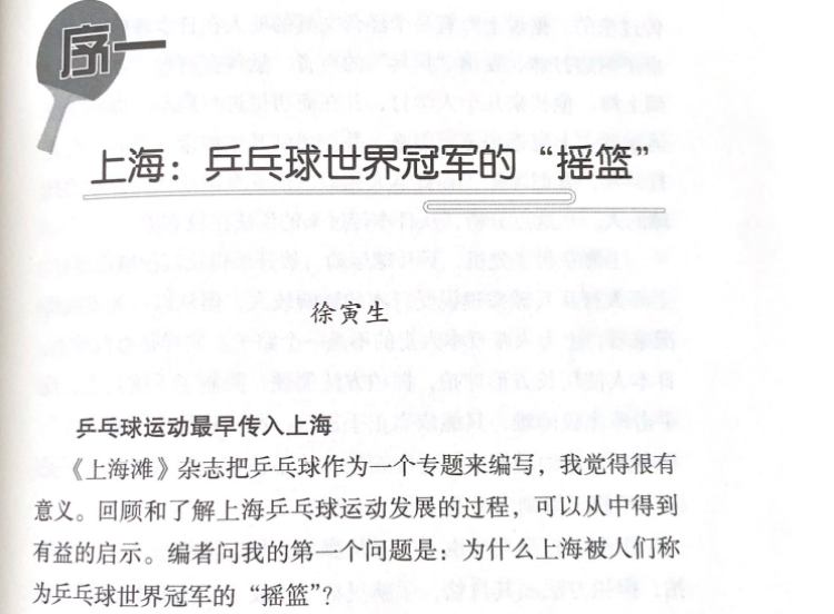 为什么上海被人们称为乒乓球世界冠军的“摇篮”?国际乒联终身名誉主席徐寅生的回答是:“新中国成立至今,我们共获得115 个世界冠军(包括奥运会冠军),来自上海的运动员、教练员就有20人之多,在全国排名第一。细想一下,之所以能取得这样的成果,又与上海这个城市的历史、经济发展,以及传统文化等因素息息相关。”