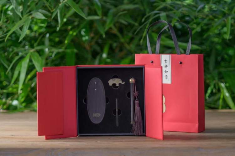 一盒特制的沉香贺礼,传递着吉祥如意的美好寓意;