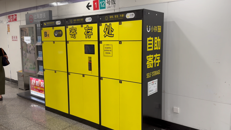 陕西南路地铁站有1号线、10号线、12号线3条线路,其中1号线和10号线附近各设置了一组寄存柜。