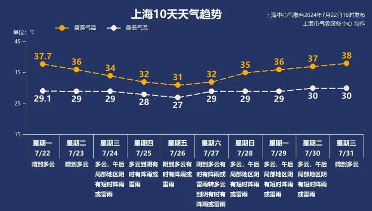 周三上海处在副热带高压边缘,多云为主,午后局部有短时雷阵雨的可能,最高气温回落至34℃,本轮连续高温有望结束。25日起,受台风“格美”外围影响,本市会出现“水晶天”还有风雨天气,最高气温下降至31~32℃。28日起副热带再度控场,或将开启新一轮高温热浪天气!