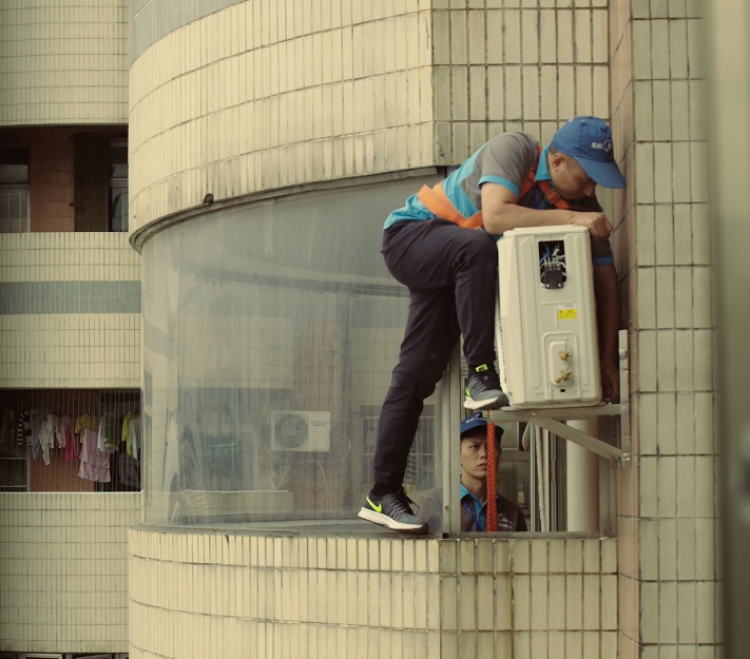 检查安装环境、确定安装位置,穿戴好安全帽、安全绳,再进行空调的安装,在炎热的环境下,熟练的安装师傅安装一台空调需要近2个小时,如果碰到安装环境相对复杂,安装的时间会更长,再加上天气炎热、高空作业的风险,难免有些安装问题产生。